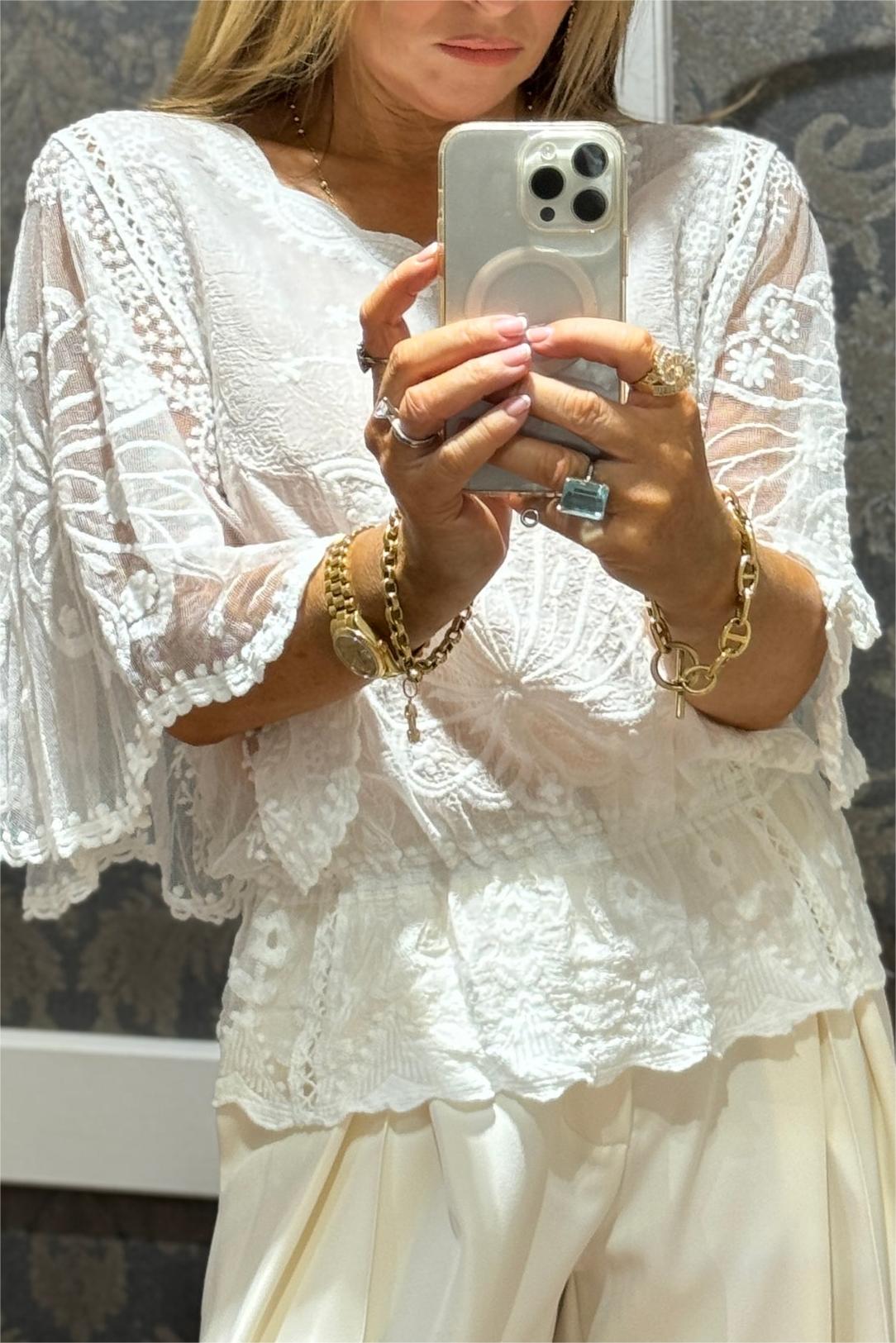 We're glad you've clicked on our new Charlot Cotton Top With Embroidered Sleeve as we're really into its casual vibes! The Floral cut make this a great choice for any stylish girl.