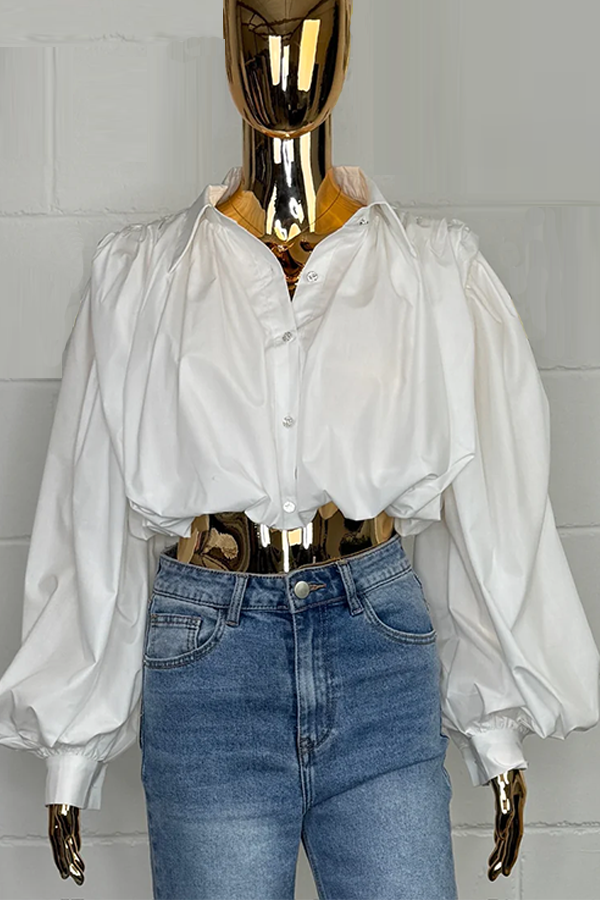 We are so glad that you clicked on our new Cropped Balloon Detail Diamante Button Shirt because we really love its casual fashion vibe! The Shirt makes it a great choice for any fashionable girl.